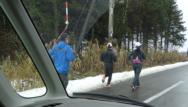 スタートから2km地点 美ちゃんが頑張っています。そして静ちゃんが後ろにつくという展開 !
