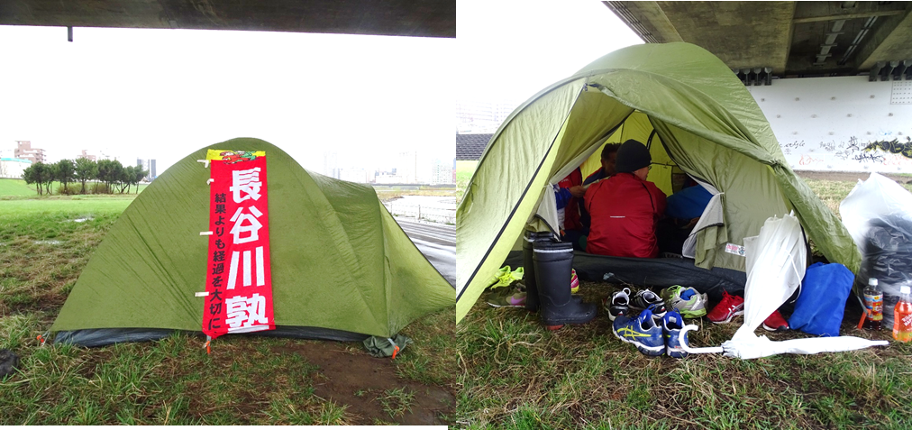 で、私たちはあえて南7条橋下にテントを設営し全員が小さなテントに入り